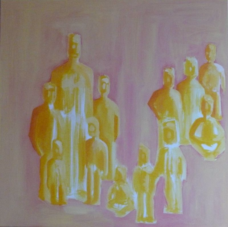 Je peins sur toile, sur bois ou sur carton, mais toujours à la peinture acrylique et sur des formats moyens ou grands. Les portraits rapprochés sont les plus fréquents, même si je me suis parfois aventurée, par curiosité, vers les paysages, ou les portraits en pied ou de groupe.